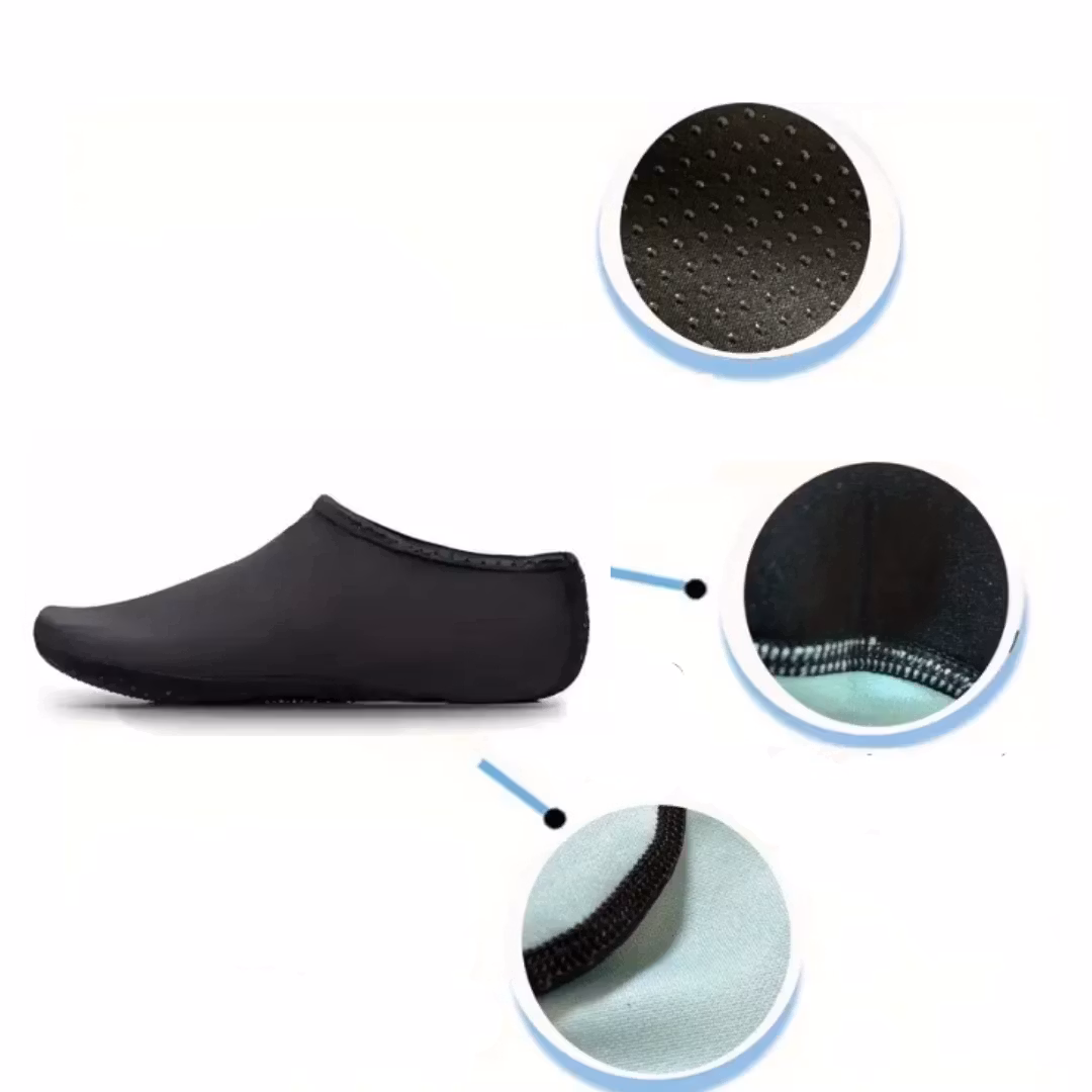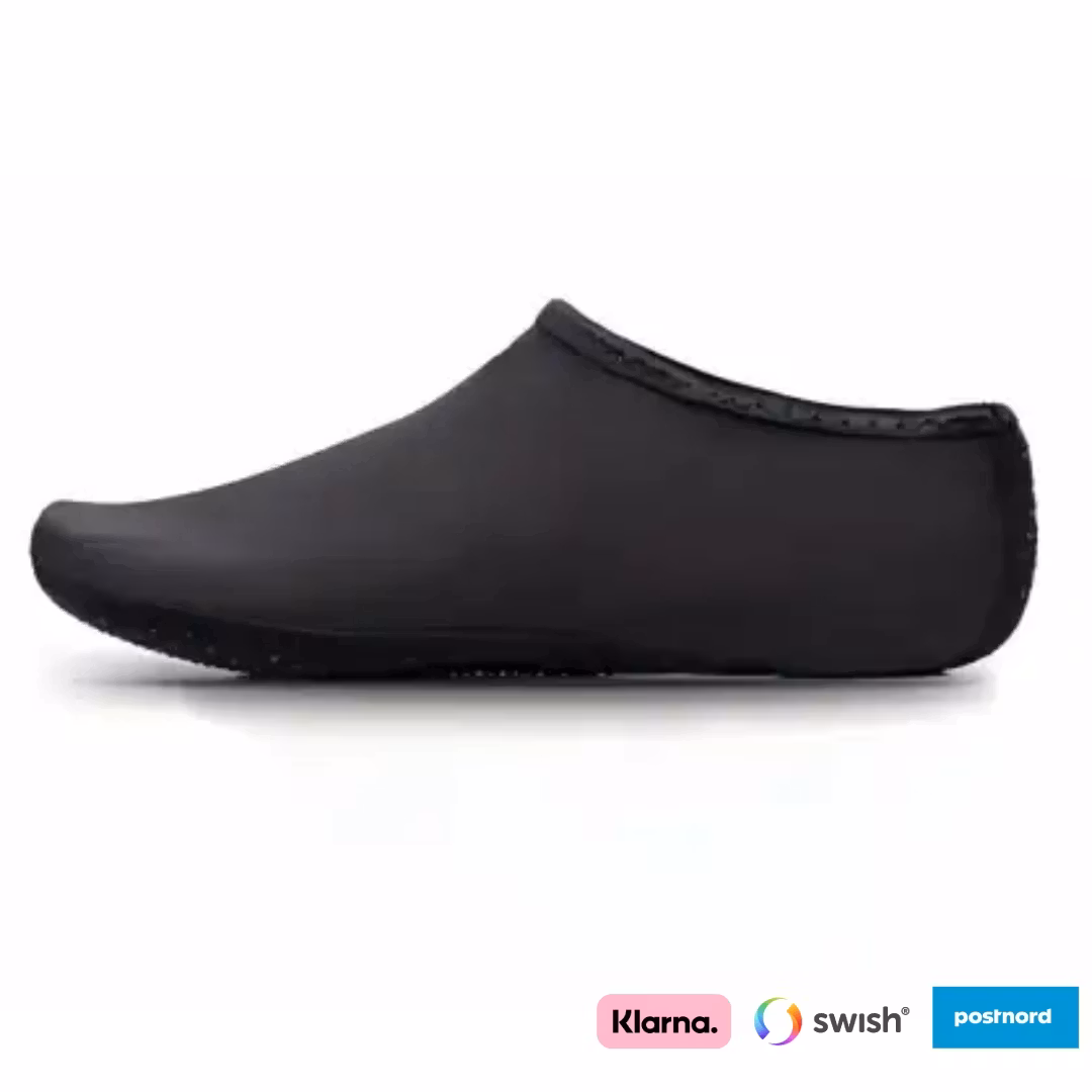 Njut av stranden utan oro – våra svarta badskor skyddar fötterna från vassa stenar, snäckskal och skräp!