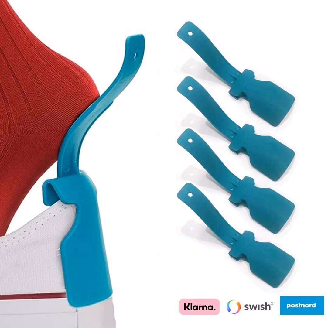 Gör påklädningen enklare med dessa smarta och kompakta skohorn i plast. Skohornen har en innovativ kläm-design som placeras baktill på skon, vilket gör att foten glider i utan att du behöver böja dig eller riskera att skada hälkappan.