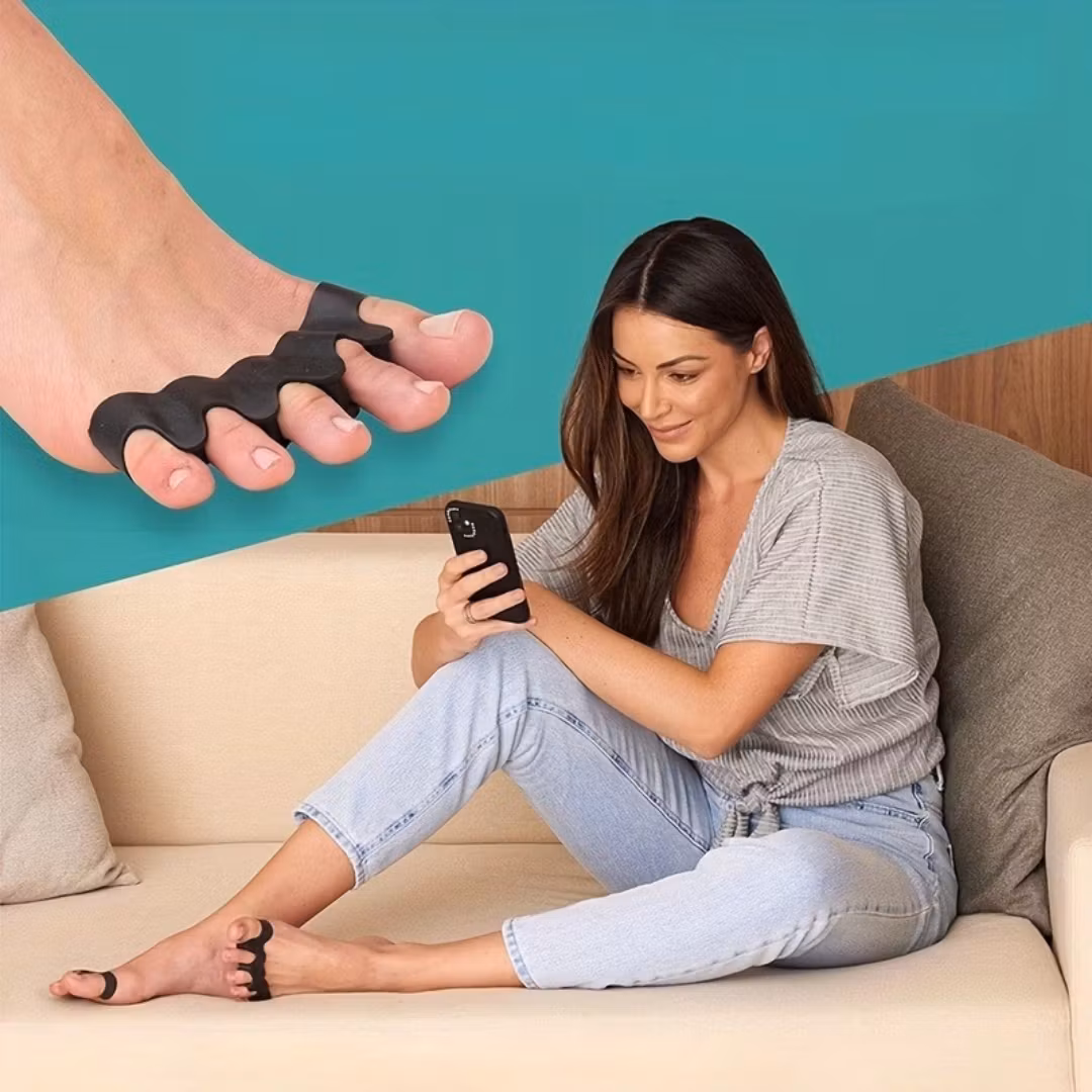 Efter en dag i trånga skor eller många timmar på benen kan fötterna kännas stela, ömma och trötta. Våra tåseparerare hjälper till att: