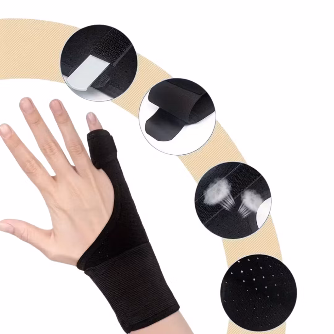 Tumstödet har en tunn och smidig konstruktion som inte begränsar rörligheten. Den fullt justerbara designen möjliggör en skräddarsydd passform över både handryggen och tummen. Det extra stabiliserande bandet gör det enkelt att anpassa trycket och stödet efter individuella behov – perfekt för dig som behöver extra avlastning vid smärta eller överansträngning.