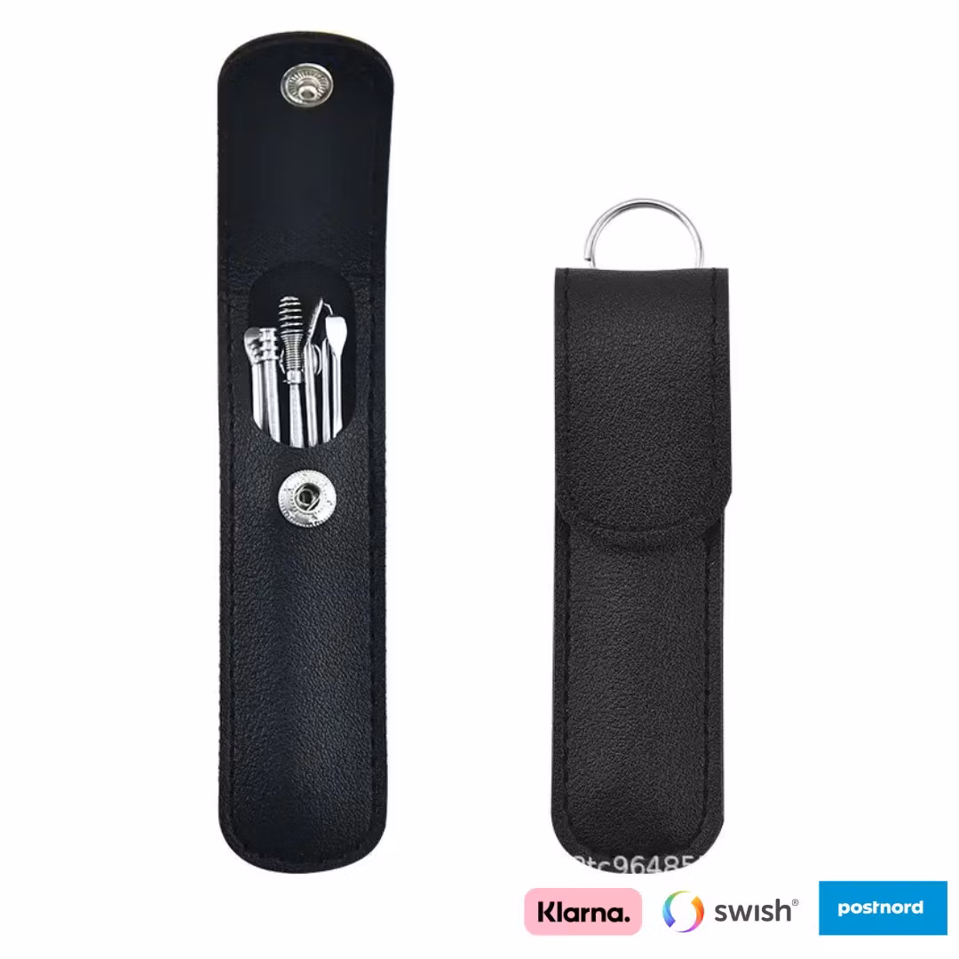 Alla verktyg är tillverkade i högkvalitativt rostfritt stål för lång hållbarhet och enkel rengöring. Kitet levereras i ett stilrent fodral av konstläder, vilket gör det smidigt att förvara och ta med på resan.