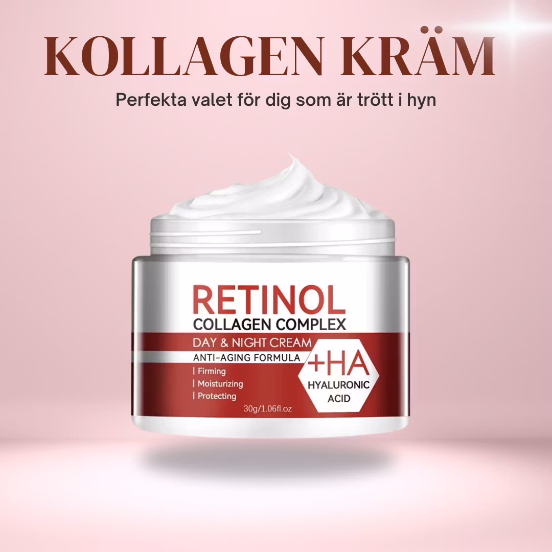 Ge din hud intensiv vård med vår Retinol Collagen Complex dag- och nattkräm, en kraftfull anti-aging formula som kombinerar retinol, kollagen och hyaluronsyra. Krämen arbetar för att förbättra hudens elasticitet, minska fina linjer och ge huden en strålande, vitaliserad look – både dag och natt.