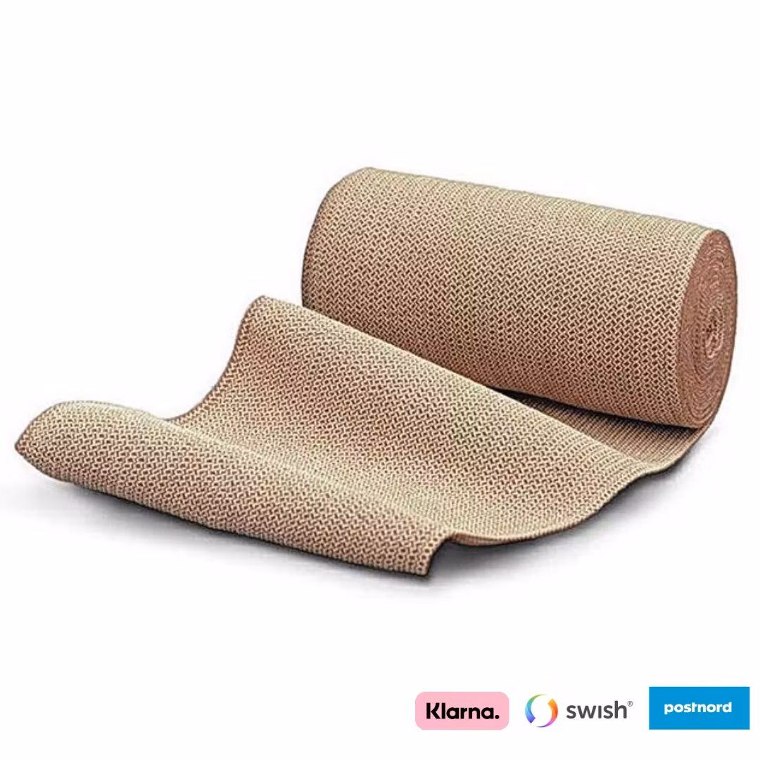 Bandagen är tillverkade i ett mjukt, elastiskt och slitstarkt material som ger en bekväm kompression utan att begränsa rörligheten. Tack vare den generösa längden kan bandagen lindas flera varv för exakt den nivå av stöd och tryck som önskas. De medföljande metallspännena (klämmorna) gör att bandaget sitter säkert på plats även under intensiv rörelse, vilket gör dem idealiska för sport och fysisk aktivitet.