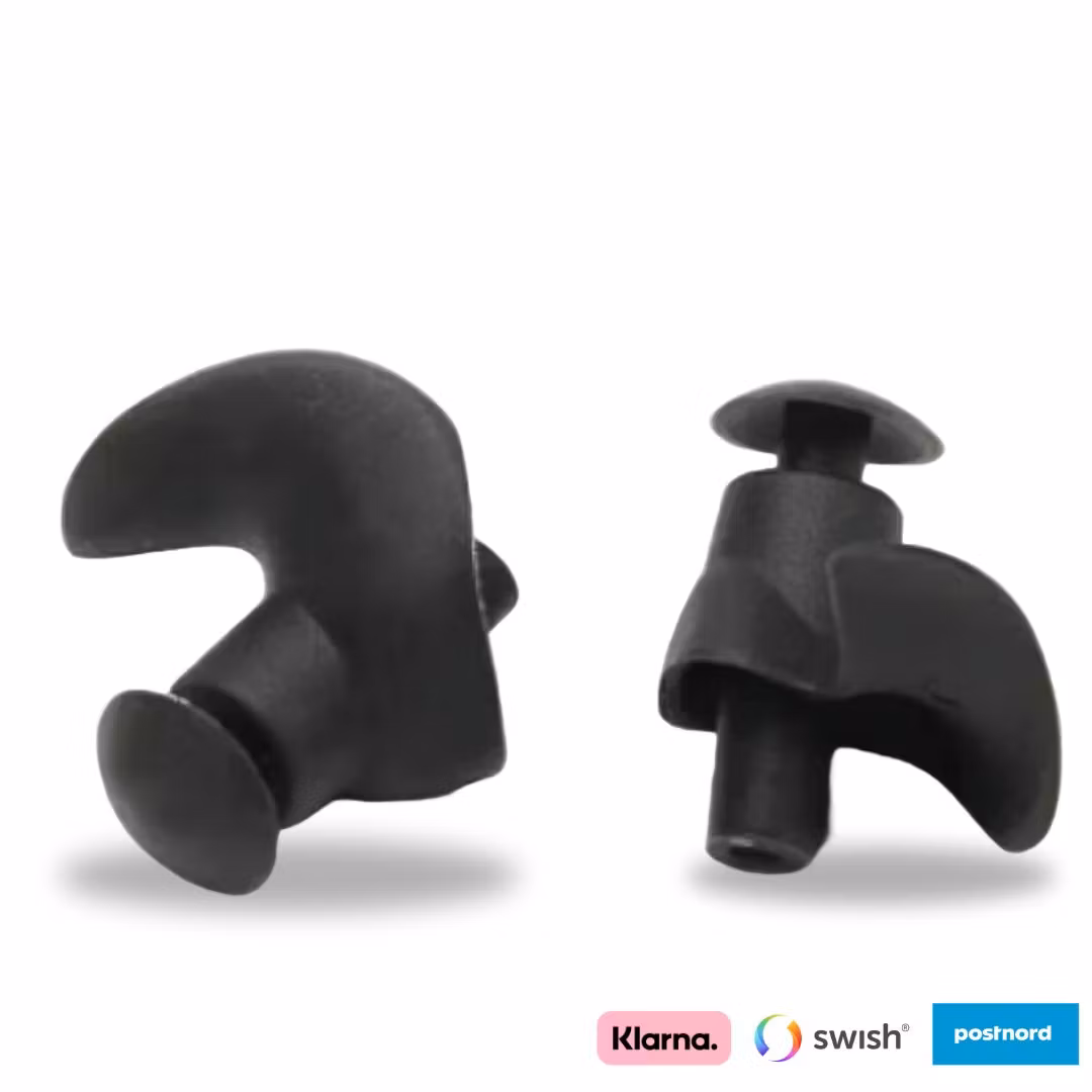 Ergonomisk och säker passform: Öronpropparna är utformade efter den mänskliga öronstrukturen (snäckan) för att sitta säkert på plats. Du slipper oroa dig för att de glider ur under simning eller intensiv vattensport.